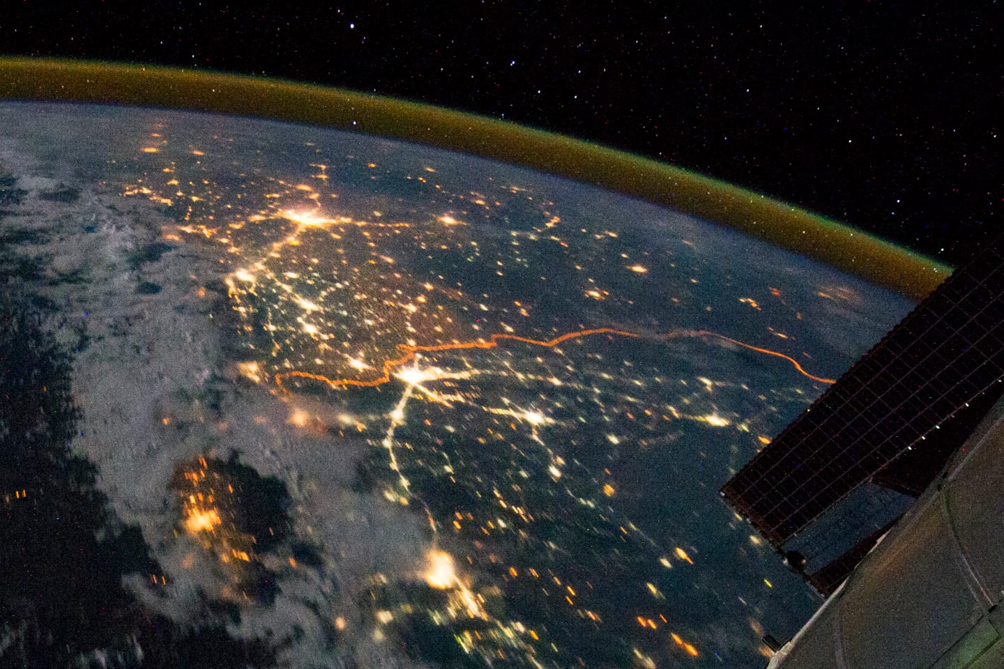 And the only visible border, a political scar on an otherwise interconnected and undivided world, is the border between India and Pakistan at night.