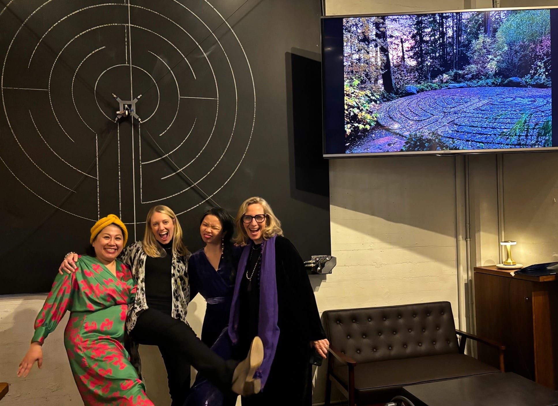 We followed winding paths into the lush Pacific NorthWest forest on a hilltop overlooking Puget Sound. Maple leaves larger than our heads formed a natural boardwalk, and the waves gently swooshed the ancient rhythm of water touching land. After some time exploring, we found a path that traced a small hill up and then down – widening into a most sacred sight: A perfectly constructed labyrinth – a swirling collection of stones draped in sunset’s riotous color.