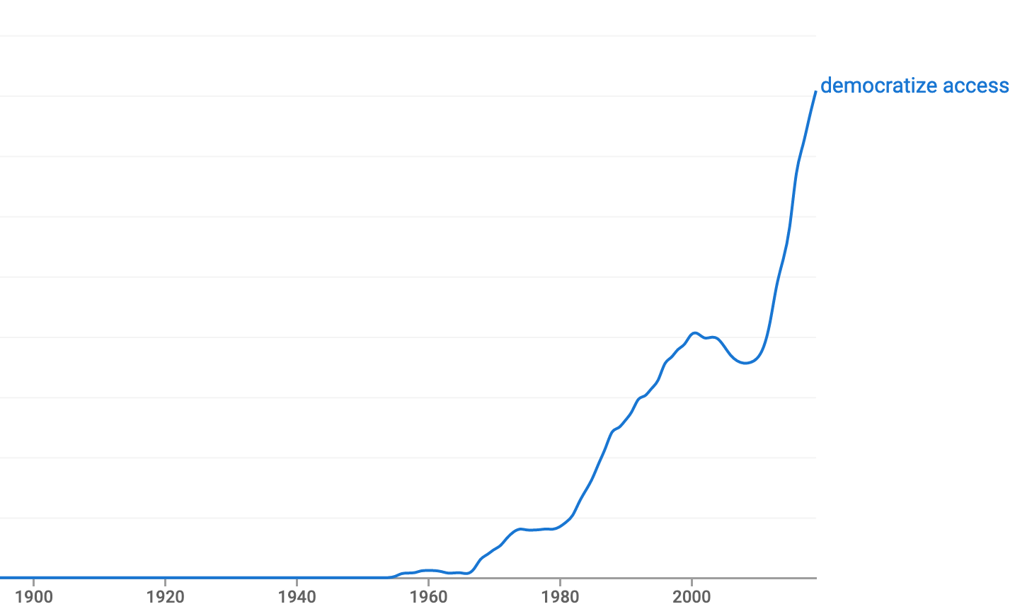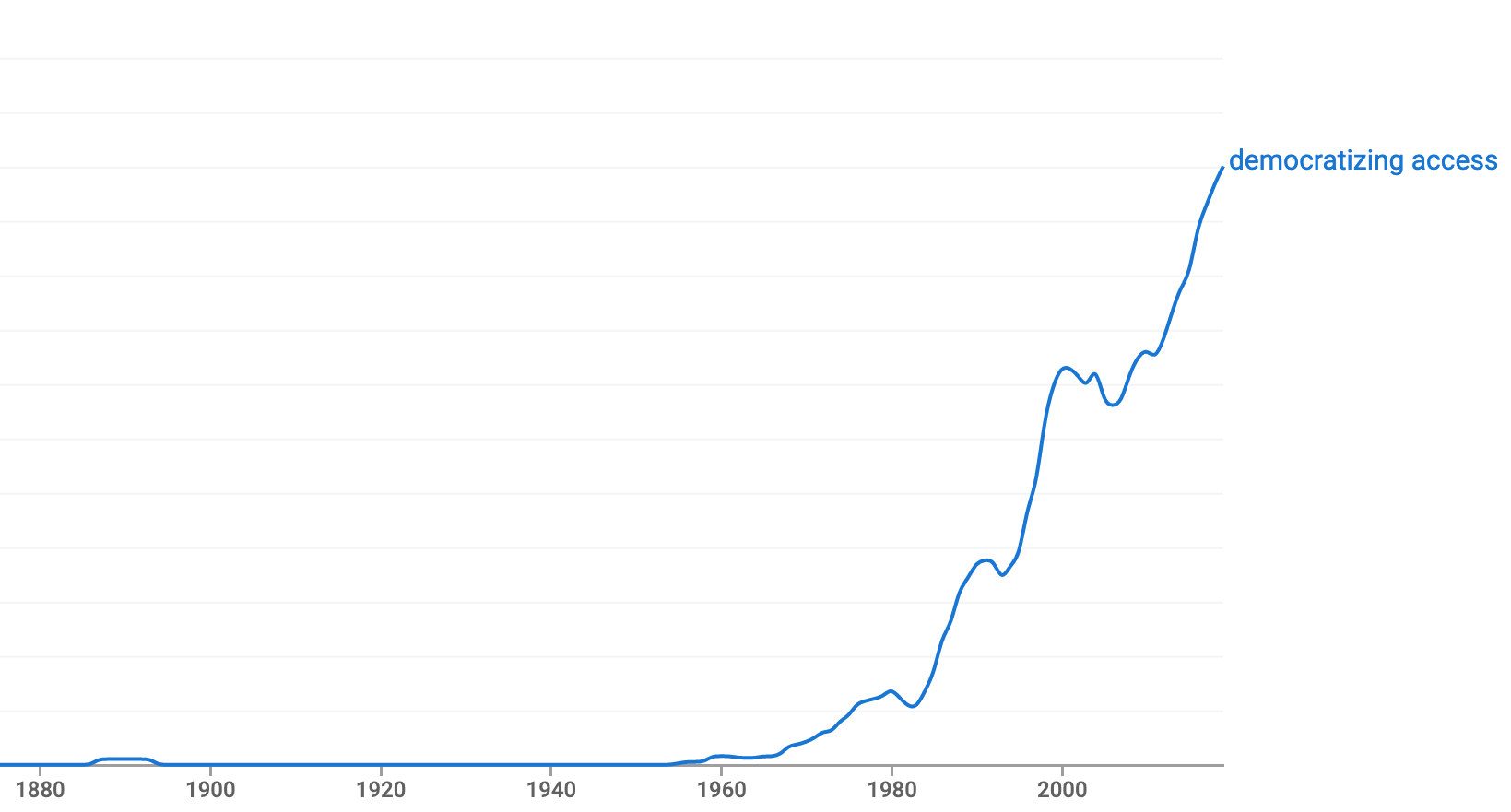 I’ve been thinking about how the term ‘democratizing access’ is used repeatedly by companies and investors to denote a kind of vague, generic, and theoretical wide-spread benefit. I did a Neeva search for the phrase “we’re democratizing access to” and page after page of results came back. It turns out — nearly everyone is democratizing access to something.