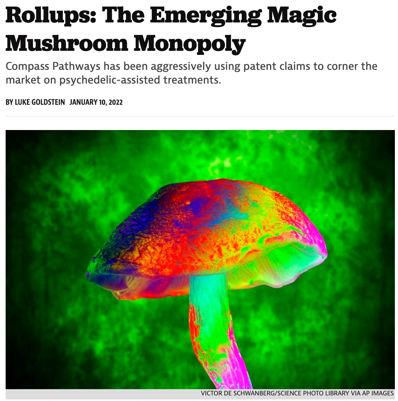 If you want to read something depressing, read this excellent Prospect piece about Peter Thiel rolling-up the psychedelic mushrooms space. The Prospect actually has a whole series on rollups which is really worth digging into.